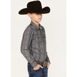 Budget ???? Cody James Boys’ Paisley Stripe Print Long Sleeve Snap Western ???? Shirt Purple ⌛