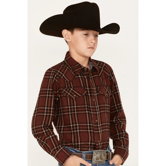 Deals ???? Cody James Boy’s Plaid Print Long Sleeve Snap Flannel ???? Shirt Rust Copper ????