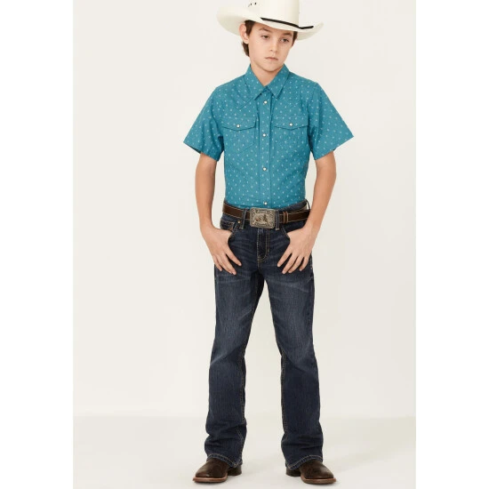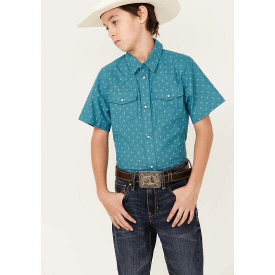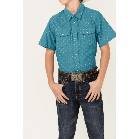 Budget ✨ Cody James Boys’ Field Day Chambray Geo Print Short Sleeve Snap Western ???? Shirt Blue ????