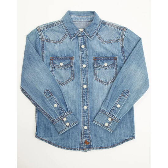 Flash Sale ⌛ Cody James Boys’ Foothill Denim Long Sleeve Pearl Snap Western ???? Shirt Medium Wash ????