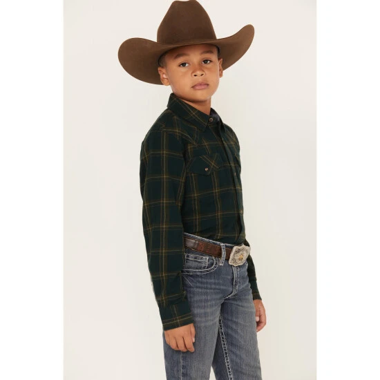 Buy ???? Cody James Boys’ Plaid Print Long Sleeve Snap Western Flannel ???? Shirt Olive ❤️