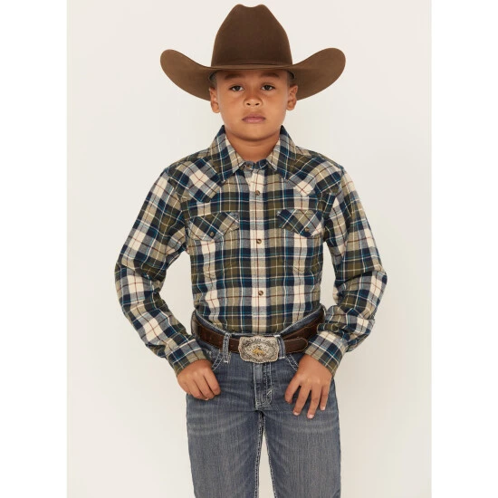 Promo ???? Cody James Boys’ Plaid Print Long Sleeve Snap Western Flannel ???? Shirt Tan ????