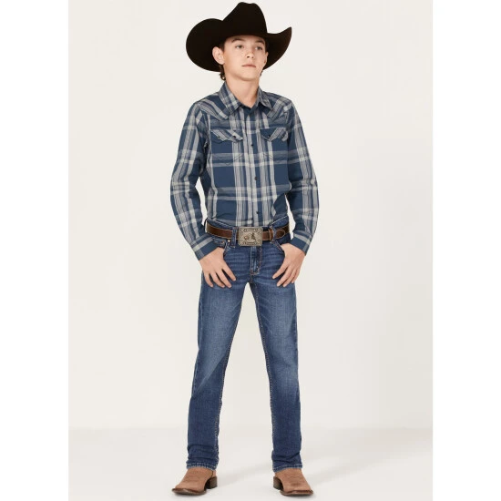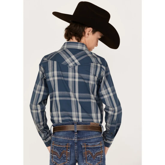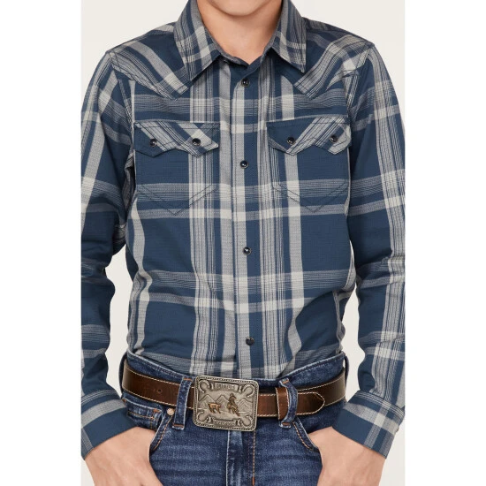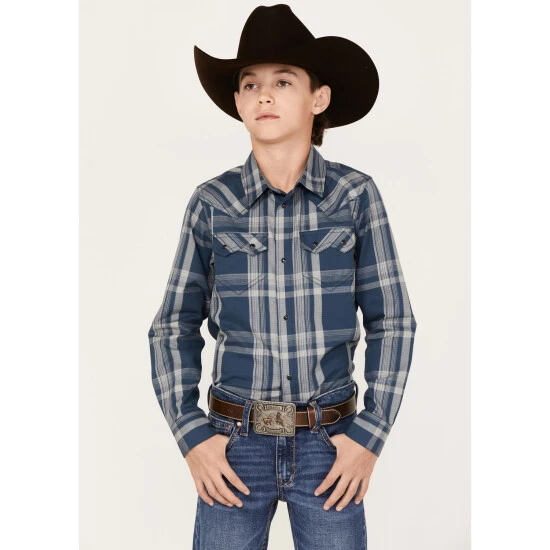 Cheap ???? Cody James Boys’ Plaid Print Long Sleeve Western Snap ???? Shirt Navy ????