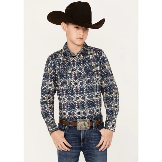 Coupon ???? Cody James Boys’ Print Long Sleeve Snap Western ???? Shirt Purple ????