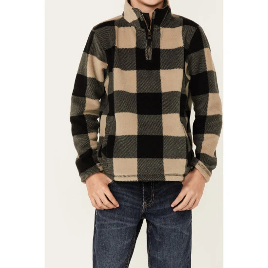Outlet ✨ Cody James Boys’ Tan Lumber Jack Buffalo Check 1/4 Zip Polar Fleece Pullover ????