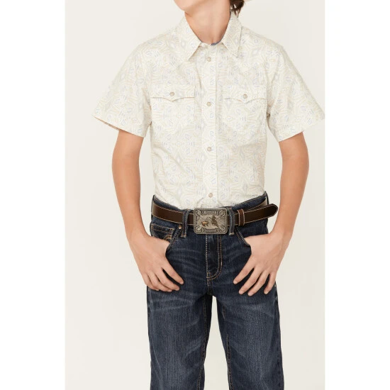 Discount ???? Cody James Boys’ Wanderer Southwestern Print Short Sleeve Snap Western ???? Shirt Cream ????