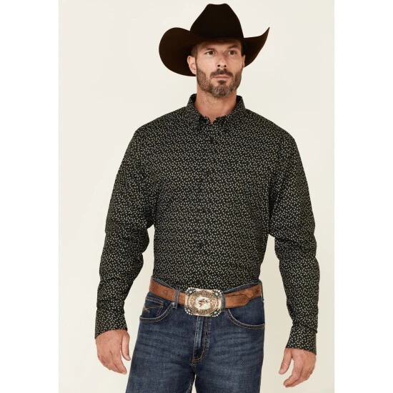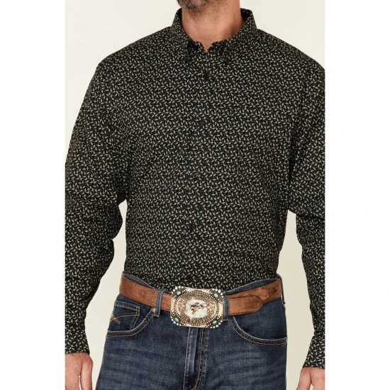 Hot Sale ✨ Cody James Core Men’s Bovine Floral Print Long Sleeve Button-Down Western ???? Shirt Black ????