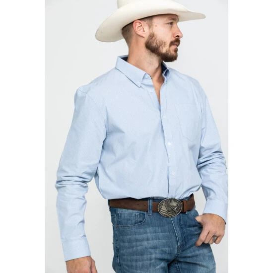 Flash Sale ???? Cody James Core Men’s Pinpoint Dobby Geo Print Long Sleeve Western ???? Shirt Blue ????