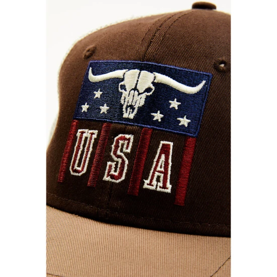 Wholesale ???? Cody James Men’s Brown Longhorn USA Patch Mesh-Back Ball Cap ????