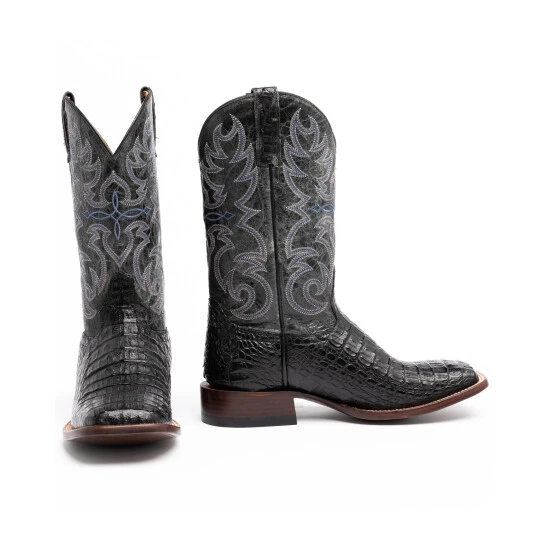 Get both bold and classic western style in these Cody James Caiman Embroidered Exotic Boots. They feature a striking caiman foot with a full grain leather shaft complete with western embroidery. These boots have leather outsoles, leather lining, and a roper heel. Wear them on the ranch and the dance floor with your jeans and a handsome shirt for effortless western style.