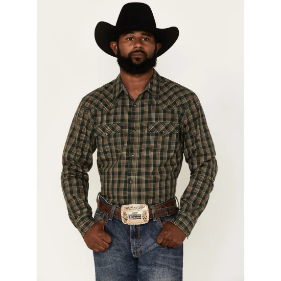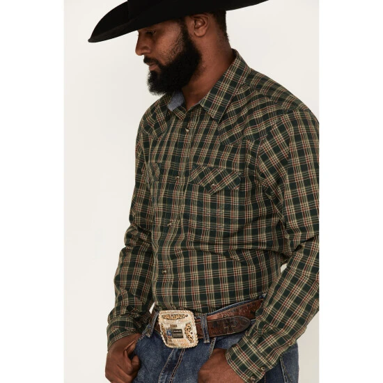 Buy ⌛ Cody James Men’s Douglas Fir Plaid Print Long Sleeve Snap Western ???? Shirt Green ????