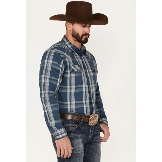 Promo ❤️ Cody James Men’s Expression Large Plaid Snap Western ???? Shirt Navy ????
