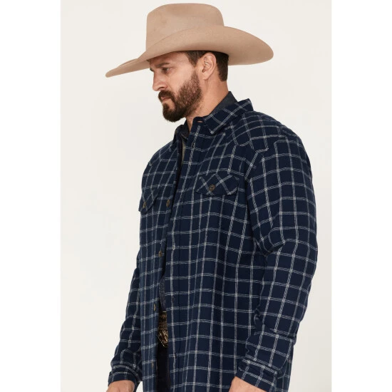 Buy ???? Cody James Men’s Ghost Tree Plaid Button Down Sherpa Bonded Western Flannel ???? Shirt Jacket Navy ????