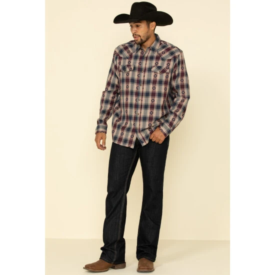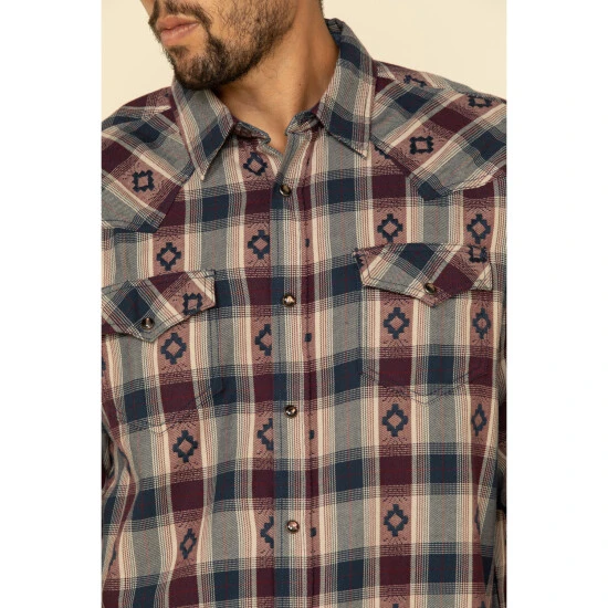Deals ???? Cody James Men’s High Plains Dobby Plaid Long Sleeve Western Flannel ???? Shirt Burgundy/navy ????