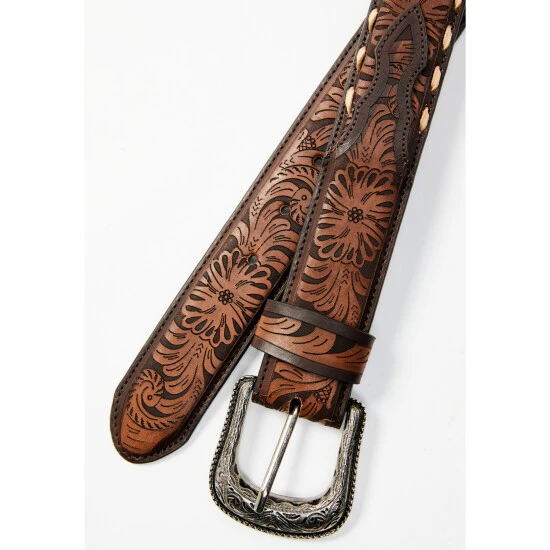 Best deal ???? Cody James Men’s Lasered Floral Pattern Cream Lace Leather Belt Brown ????