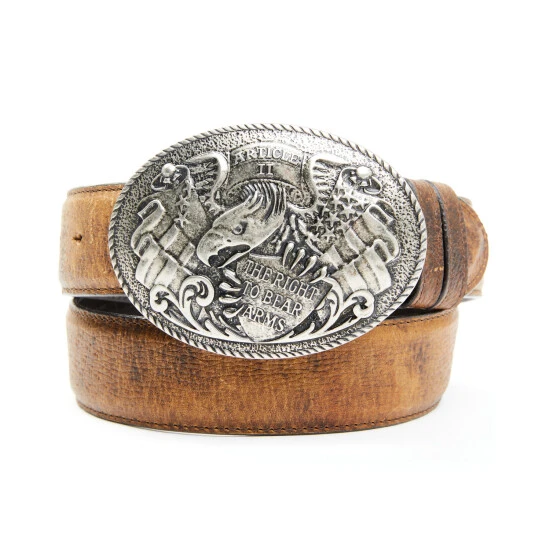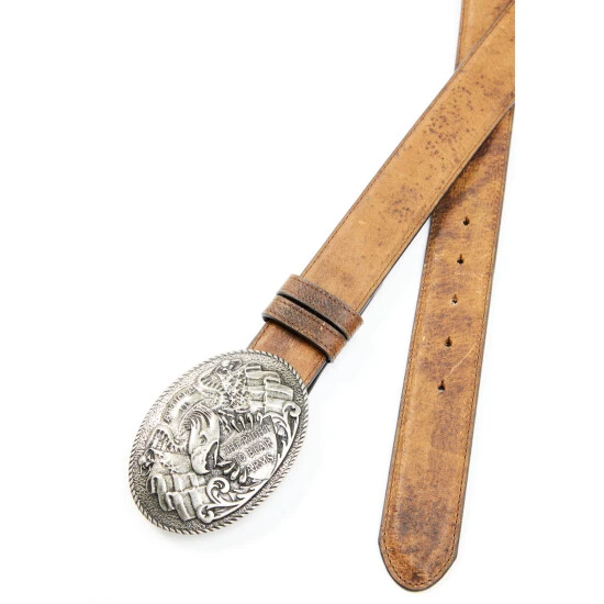 - Oval plate buckle with embossed eagle and flag patriotic details