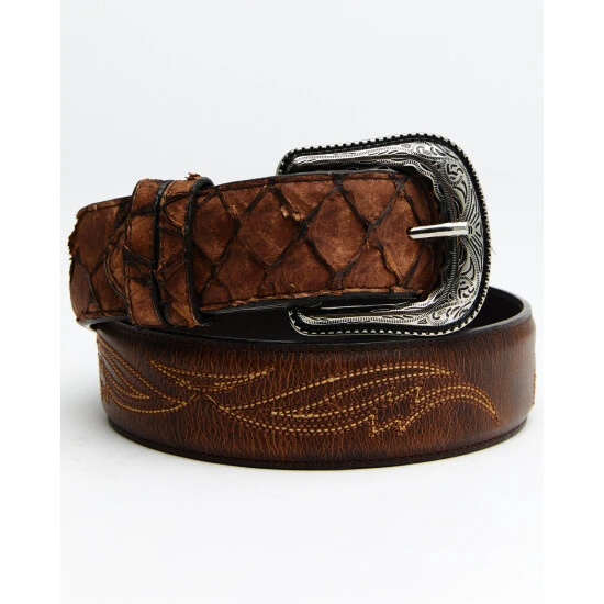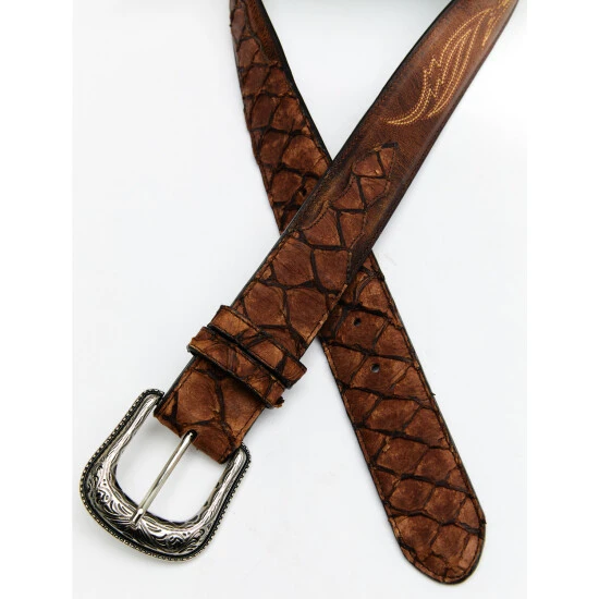 Flash Sale ???? Cody James Men’s Pirarucu Embroidered Belt Brown ????