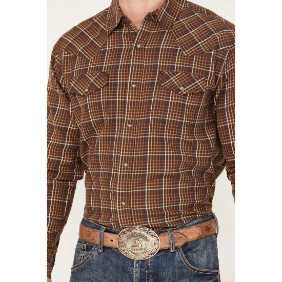 Deals ???? Cody James Men’s Rusty Nail Plaid Print Long Sleeve Snap Western Flannel ???? Shirt Rust Copper ????