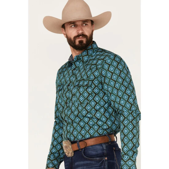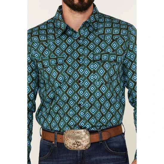 Buy ???? Cody James Men’s Tavern Geo Print Long Sleeve Western ???? Shirt Dark Green ????