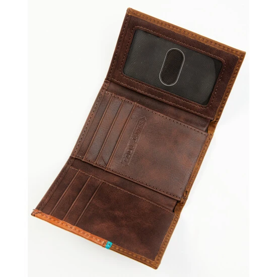 Wholesale ???? Cody James Men’s Turquoise Underlay & Brown Tooled Trifold Wallet ????