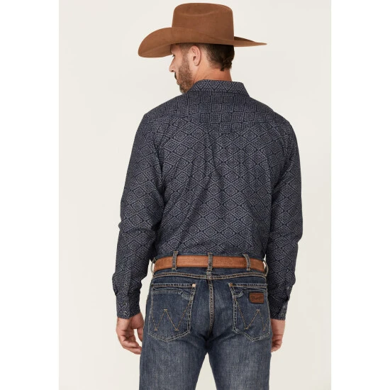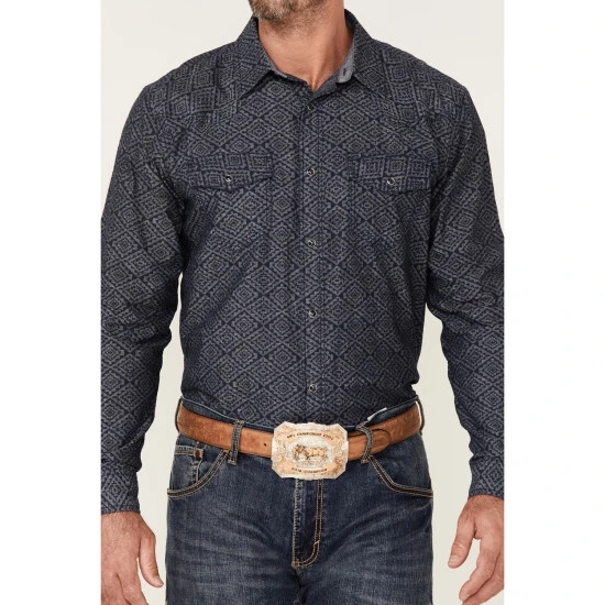 Budget ???? Cody James Men’s Washed Out Chambray Southwestern Print Long Sleeve Snap Western ???? Shirt Navy ⌛