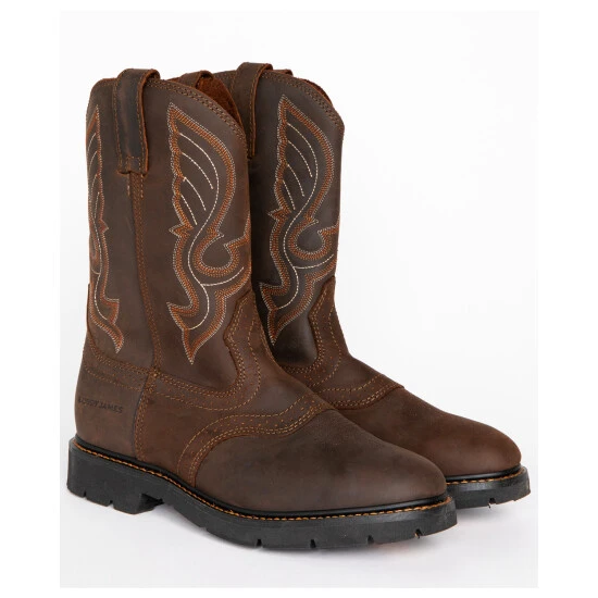 Cheap ???? Cody James Men’s Western Pull On Work ???? Boots – Round Toe Brown ????