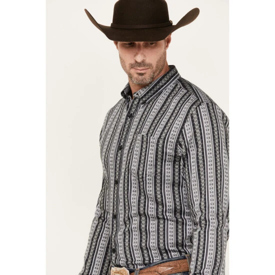 Wholesale ???? Cody James Men’s Wiltern Striped Long Sleeve Button Down Stretch Western ???? Shirt Grey ????