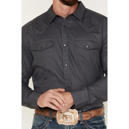 Hot Sale ???? Cody James Southside Satin Stripe Snap Western ???? Shirt For Men Dark Grey ✨
