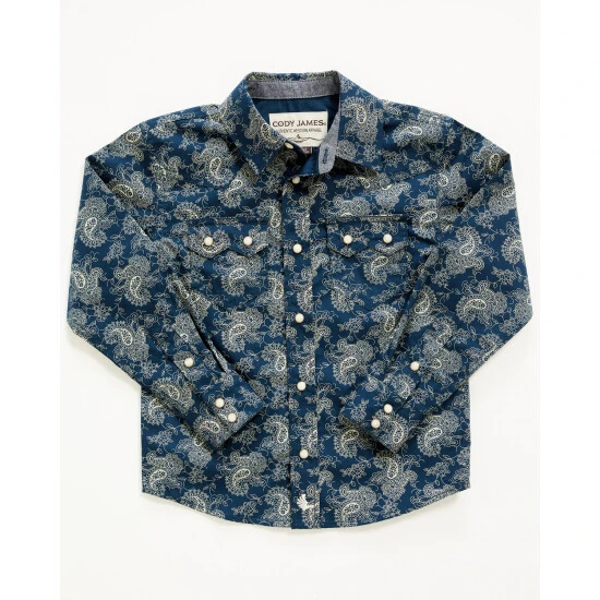 Promo ???? Cody James Toddler-Boys’ Paisley Print Long Sleeve Western Snap ???? Shirt Navy ????