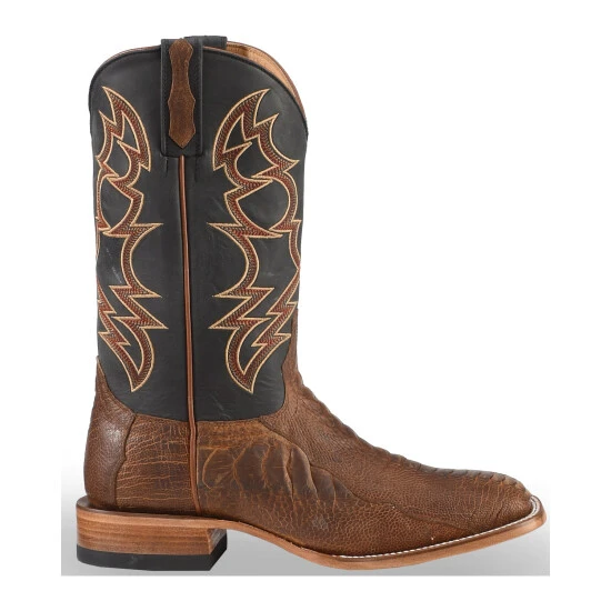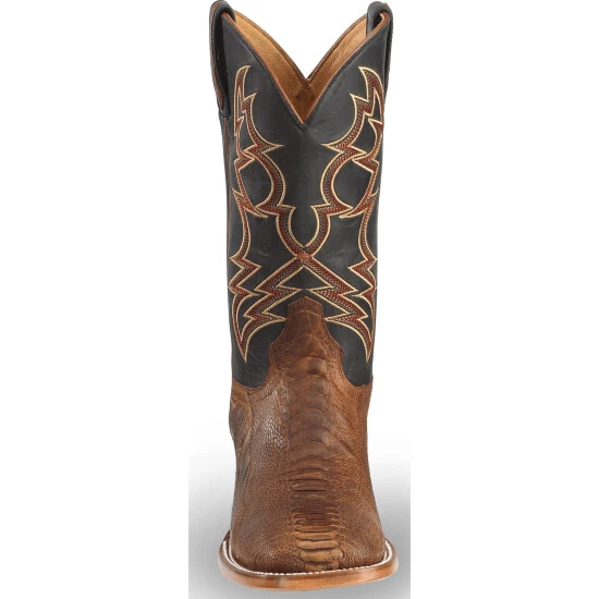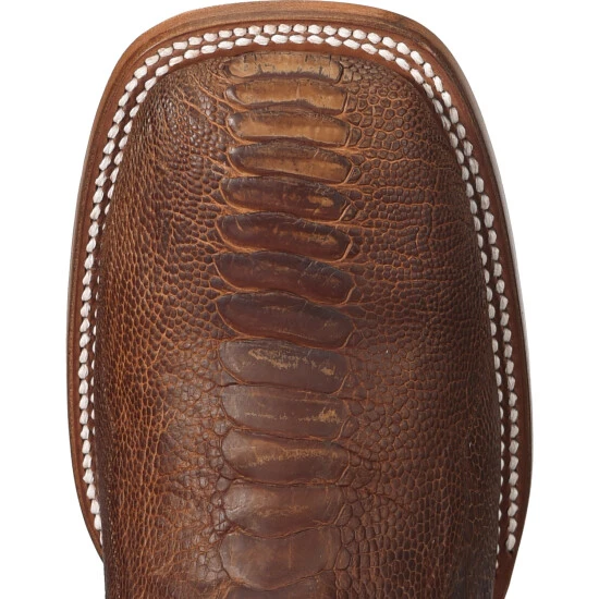 These Cody James Two Toned Ostrich Leg Exotic Boots are bold and make a statement. The foot is made of ostrich leg and features a broad square toe. It has a leather upper with western embroidery and pull tabs with ostrich overlay. Show off your western style in these Cody James exotic boots.