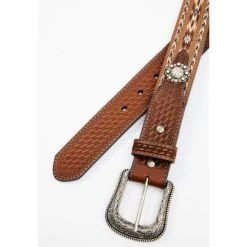 Best Sale ???? Cody James Men’s Longhorn Americana Draped Flag Basketweave Buckle Belt Brown ????