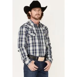 Best Pirce ⌛ Cody James Men’s FR Houndstooth Check Long Sleeve Snap Work ???? Shirt Medium Blue ⭐