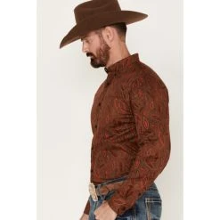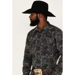 New ???? Cody James Men’s Paisley 101 Paisley Print Long Sleeve Snap Western ???? Shirt Brown ????