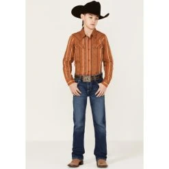 Buy ???? Cody James Boys’ Southwestern Stripe Print Long Sleeve Snap Western ???? Shirt Brown ????